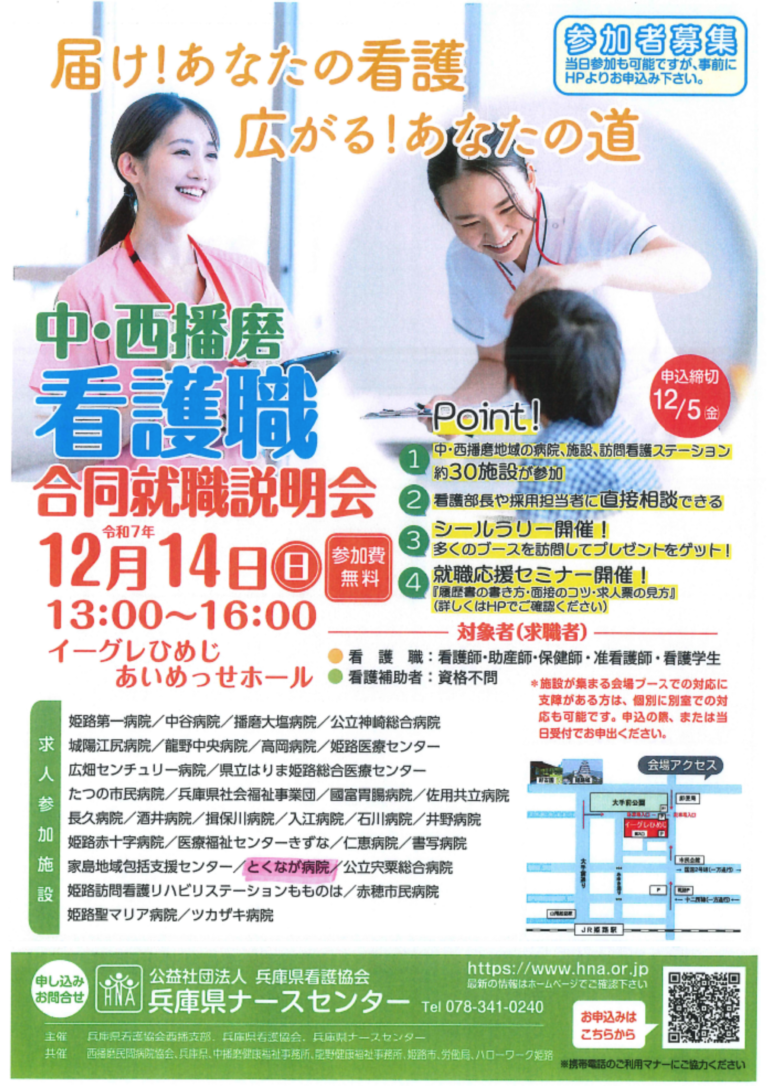 2025年12月14日(日)中・西播磨看護職合同就職説明会のお知らせ